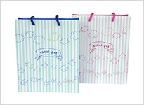 最も一般的な紙袋の形式です。マチを取ることによって様々な商品を入れることができるため、幅広い用途で使われています。重量のあるものを入れる場合は、強度を持たせるために用紙全体に表面加工を施したり、底板を入れたり、持ち手をアクリルのものにするなどの工夫が必要となります。